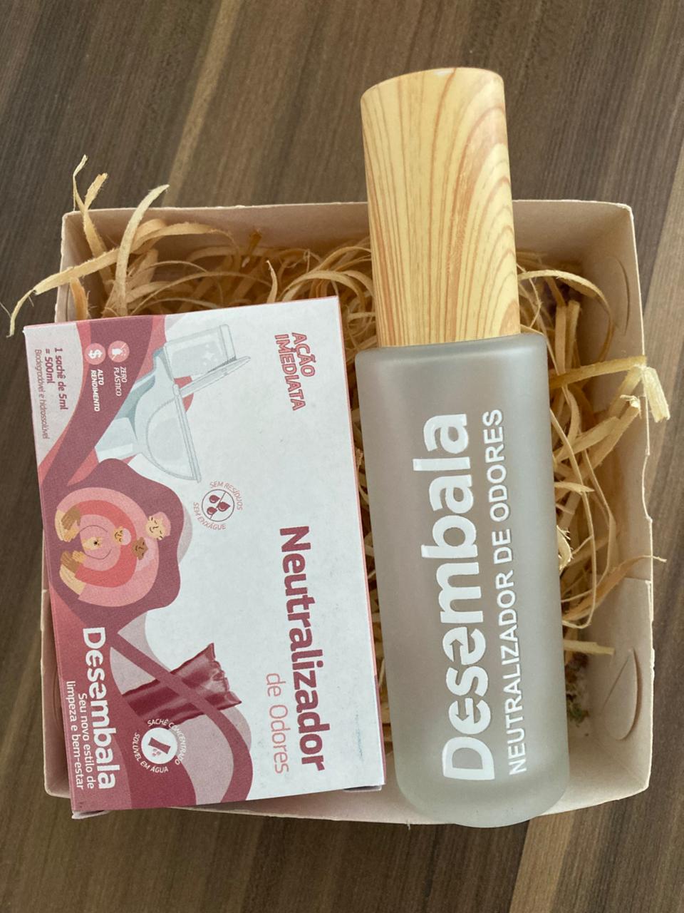 Produtos inclusos no kit: Sachê de neutralizador de odores, fragrância de bambu e Frasco spray de vidro de do neutralizador de odores 60 ml.